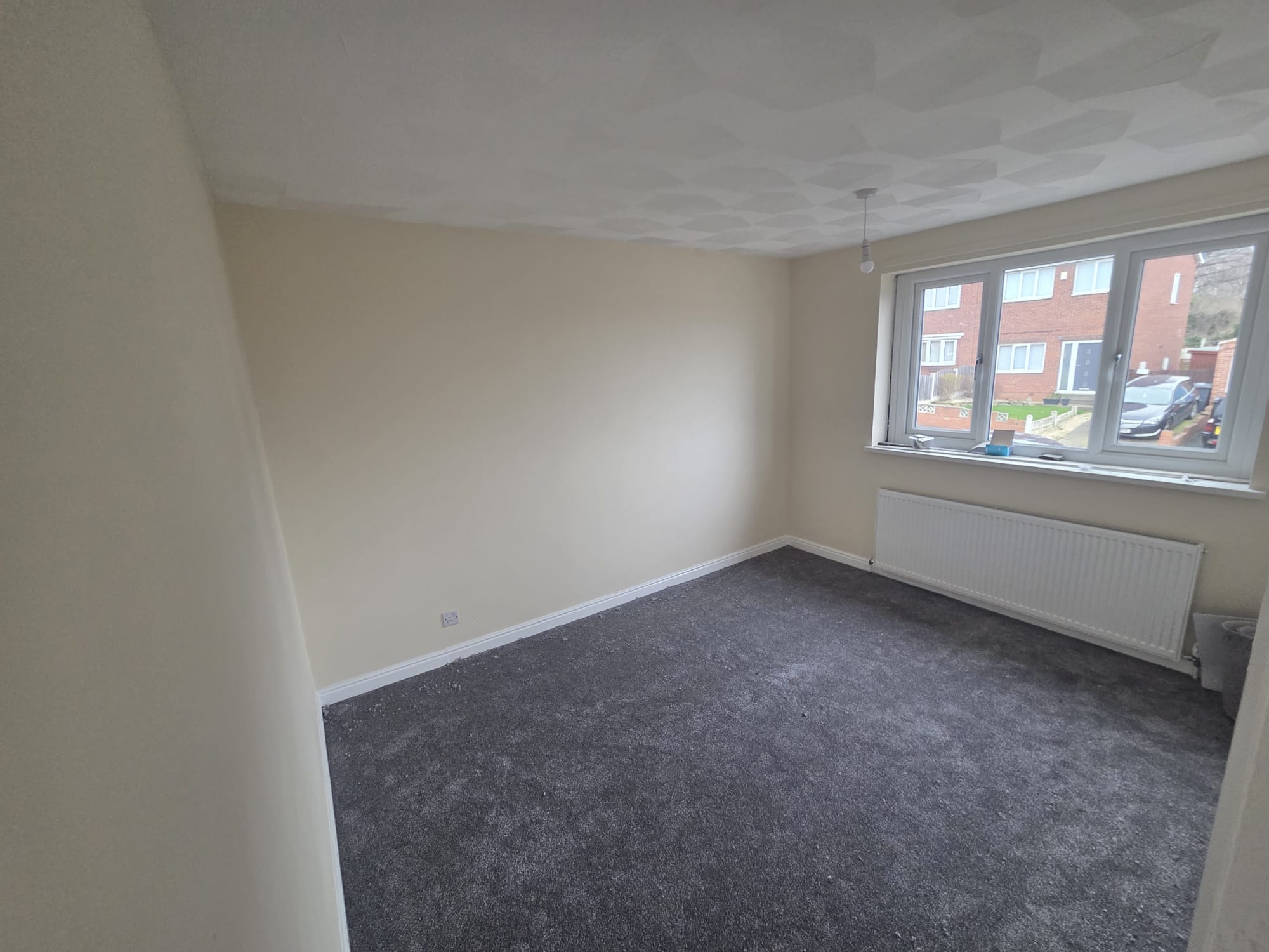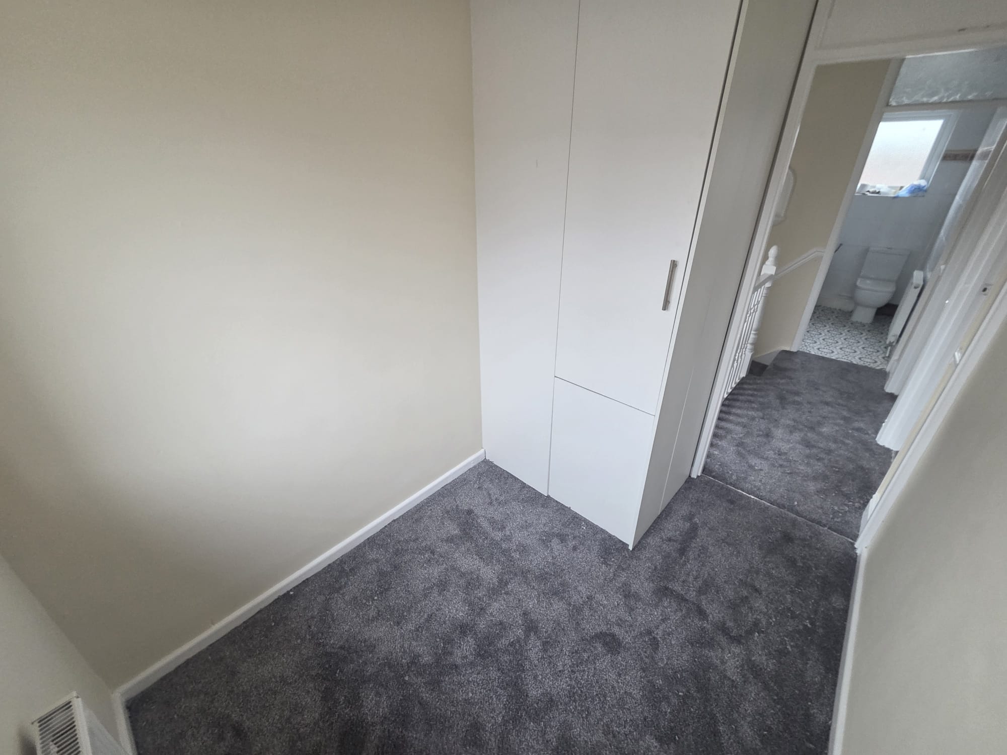 Two larger than average double-sized bedrooms and one single bedroom with built-in cupboards, all with neutral cream plastered walls and will be having charcoal carpet to floor.