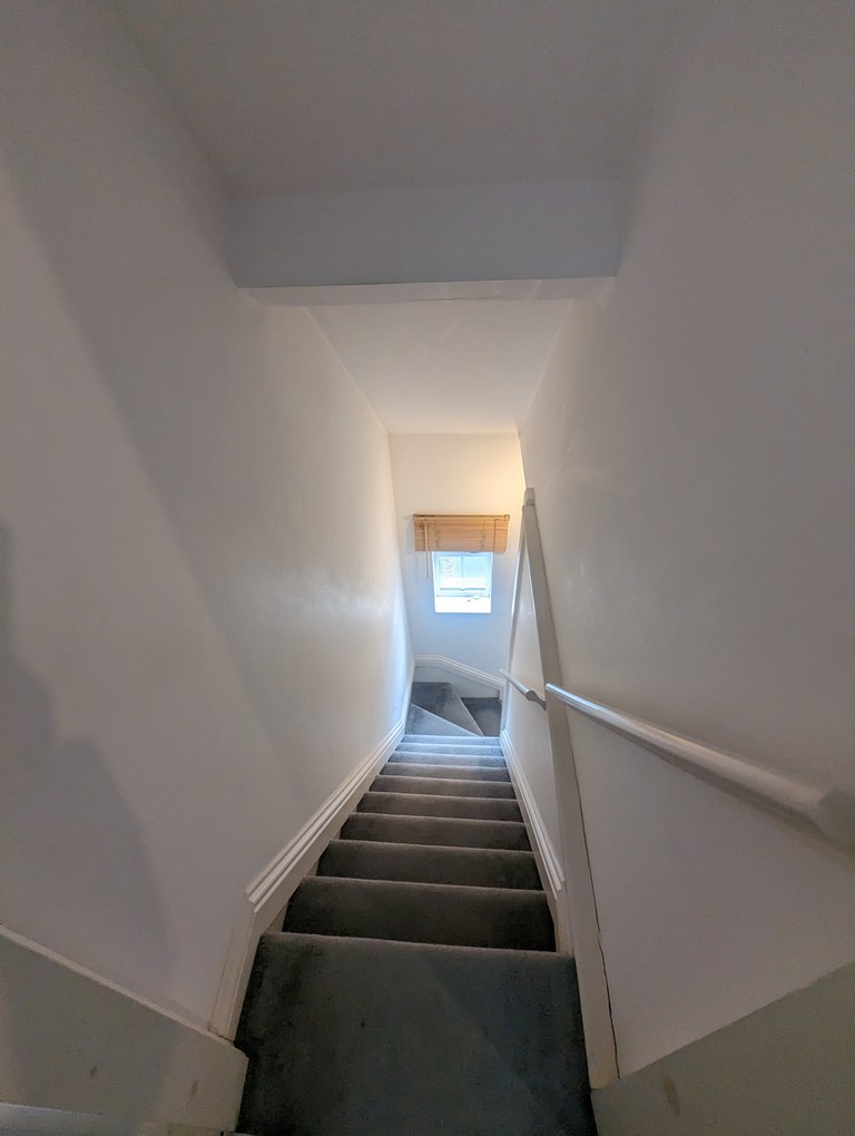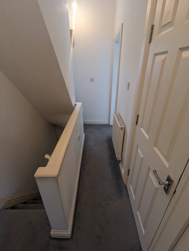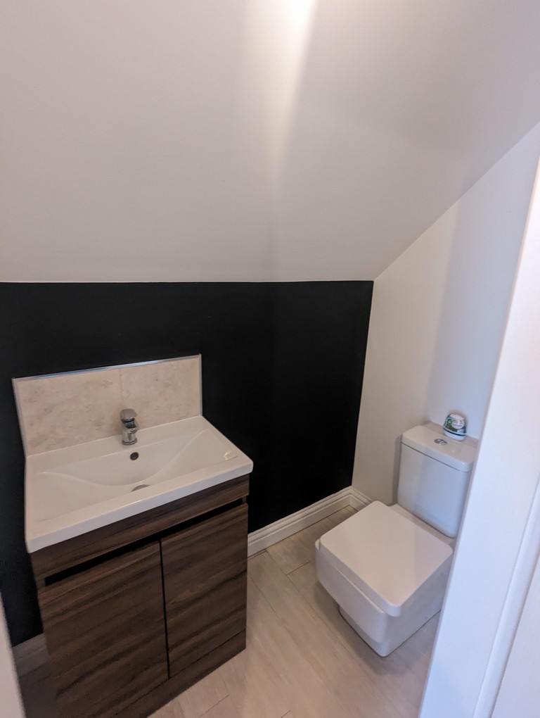 Going upstairs via the carpeted stairs gives access to 2 x double-sized bedrooms and a single bedroom - one with modern walnut and white en-suite toilet and basin.