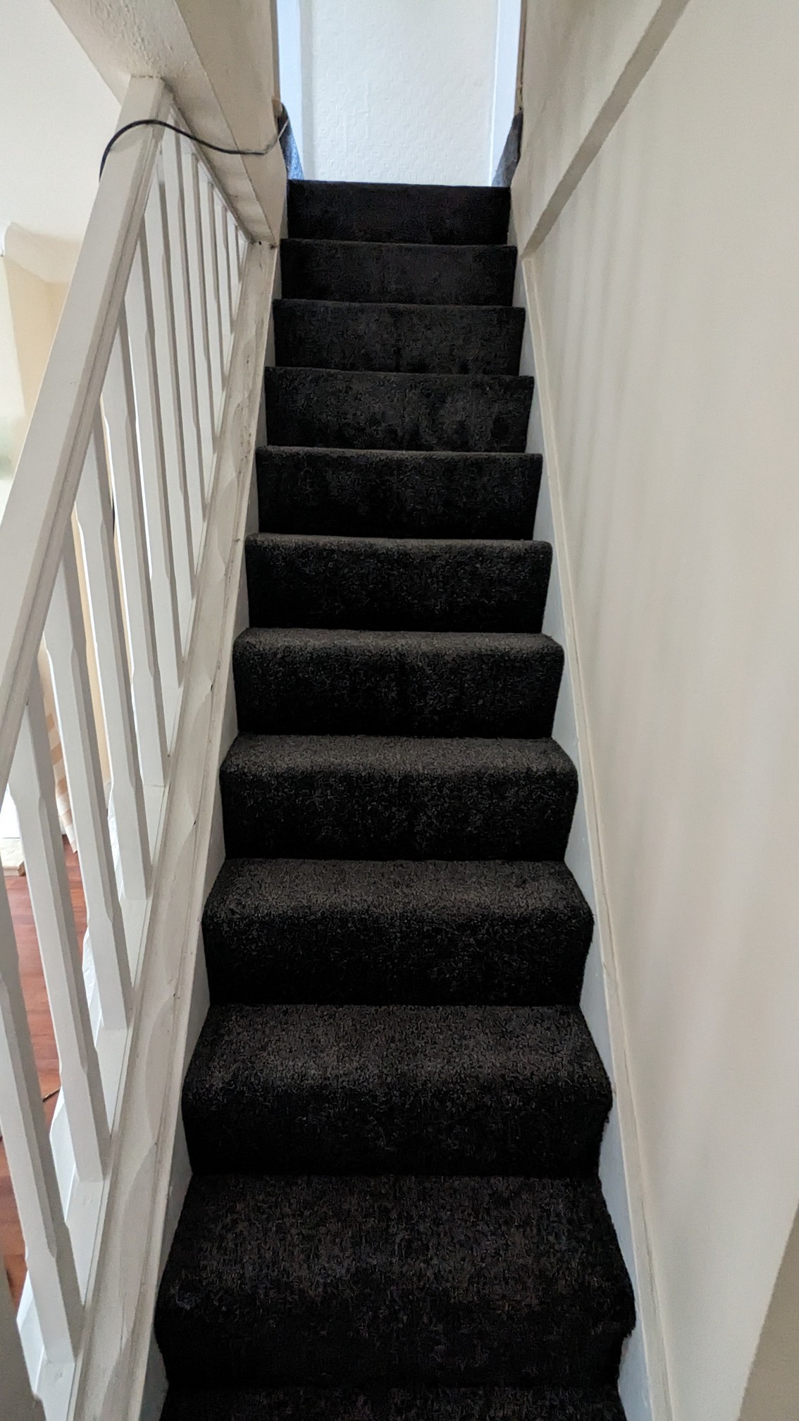 Back inside the house, the fully carpeted stairs leads up into two very big double-bedrooms -