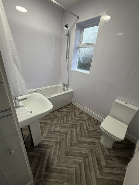 The bathroom has a new white modern bathroom suite with over-bath shower and rail/curtain. New shower panels to 3 walls and new practical lino to floor.