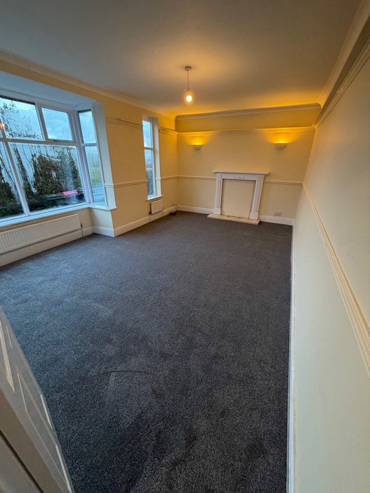 Large entrance hallway with downstairs wc and sink. Massive front room with two bay windows with new carpet to floor and newly decorated cream walls with white woodwork.